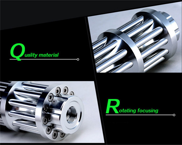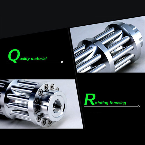 Questo potente puntatore laser forma Gatlin è fatto di metallo di alta qualità con tipo avanzato III dura superficie ossidazione anodica e anti-usura. la combinazione di look fresco e la classe impermeabile IPx5 lo rende popolare tra gli avventurieri. Compra questo puntatore laser per dare un cappuccio della penna laser con modelli diversi.